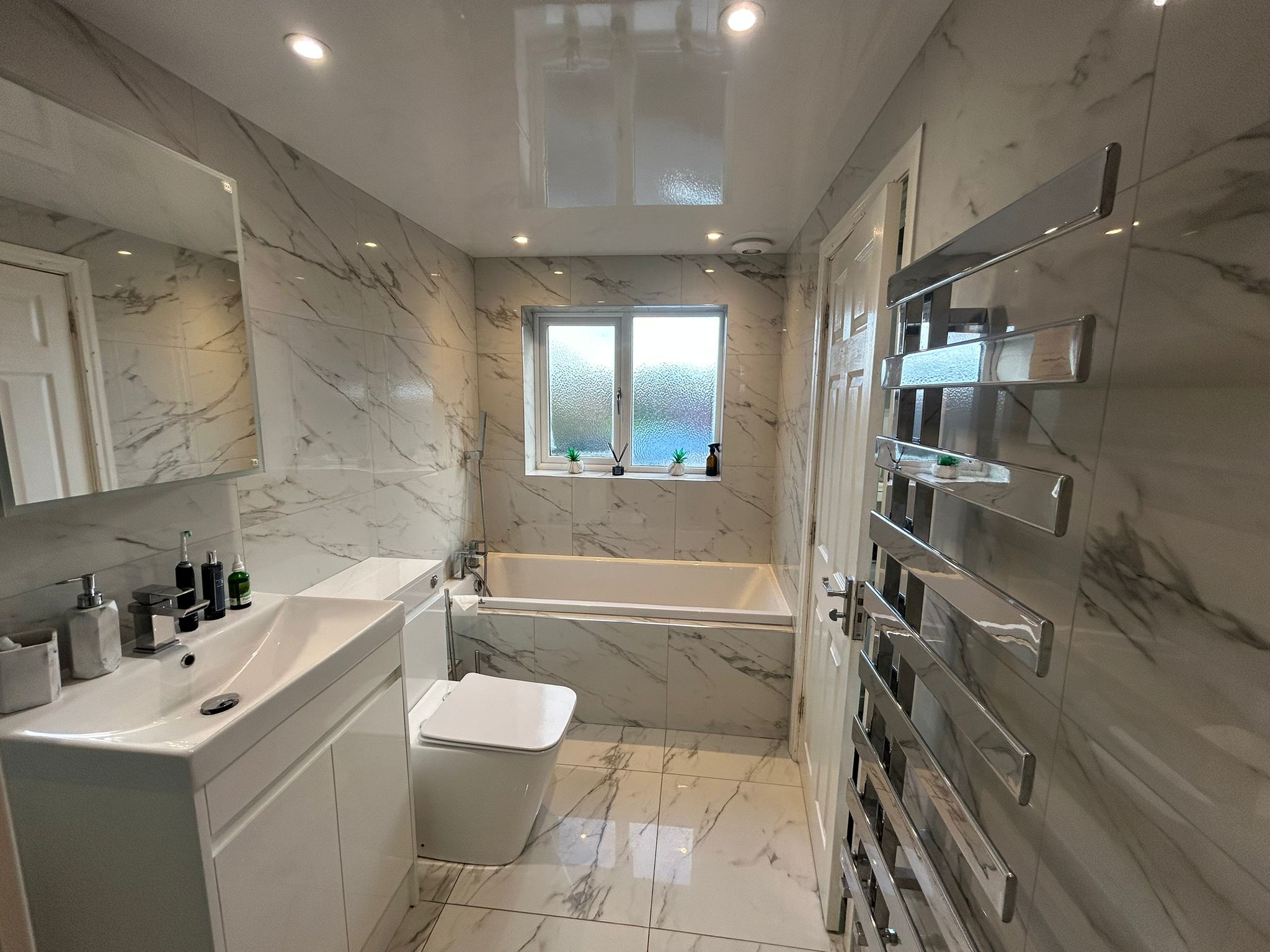 Upgraded suite and fittings, with the option to swap for shower tray and glass.